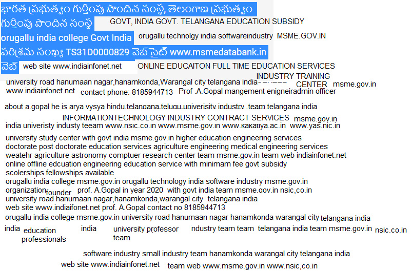 REGISTRATION NUMBER: TS31D0000829- orugallu india college with govtindia msme.gov.in govt india notary prof. a.gopal hanamkonda,warangal city tealgnaiandia